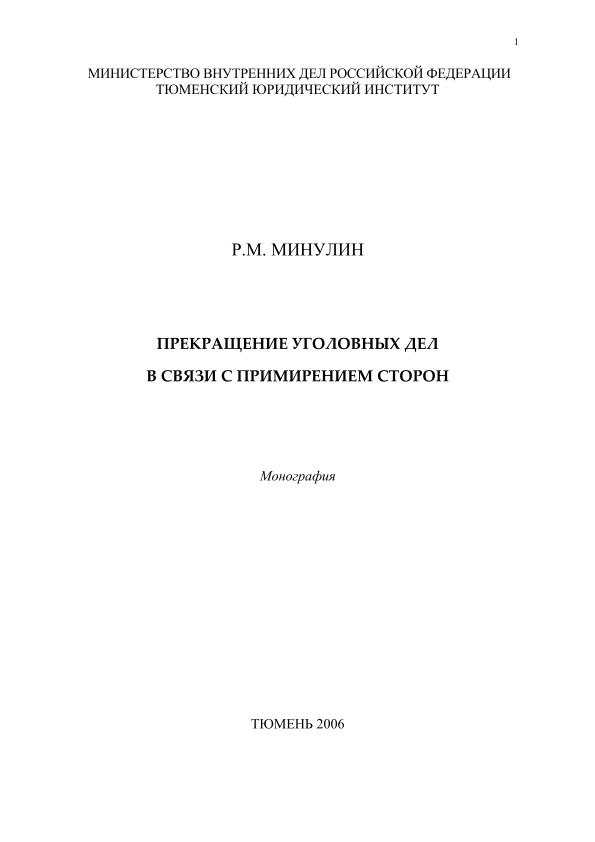 Прекращение уголовных дел в связи с примирением сторон: монография